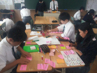 生徒たち自身が場(授業)を創り出す準備時間の2日目。前回はブレストがメインであったため、比較的どのチームもスムーズに進行していましたが、本日は“カオス”状態になったチームが多くありました。生徒はその時間を「停滞期」と名付け、その時期を乗り越えると「絶頂期」なんて表現していました。しかし、上記にあげた生徒のコメントにもあるように、真剣になればなるほど、何かを生み出す苦しみにぶちあたった日でもあったようです。