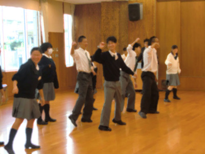 ②チームWe can hear !の授業(ワークショップ):生徒たちが場(授業)を創る第一弾。本時の目標は身体を動かして、話をしてストレス解消!①人間知恵の輪:8人×1チームで円となり、左手なら左手、右手なら右手をつないで知恵の輪をつくる。制限時間は5分間。最初の2分間はノンバーバルで行い、その後学年毎に話をしながら知恵の輪をほどく。②ジェスチャー:4人×1チームとなり、3人で1人に対してジェスチャーを行う。お題は、エグザイル・ドラゴンボール・ディズニーランド・世界陸上。③4人×1チームの円で座り、8分間×2ラウンドで話をする。テーマは「辛かったこと・いらいらしたこと」「うれしかったこと・すかっとしたこと」