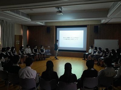 高校生が今まで経験したりこれからするであろうシチュエーションをたくさん用意しました。生徒たちは、難しいと言いながらも積極的にワークに取り組んでくれていました。