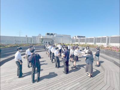 本日の「きょうえんしゃワーク」は、屋上で行いました。気温が高い中でしたが、普段とは違う雰囲気で行うことができました。